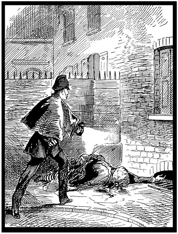 Descubrimiento del cuerpo de Polly Nichols. Tomado de “Famous Crimes Past and Present” de 1902